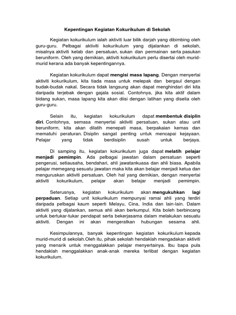 Kebaikan Menyertai Aktiviti Kokurikulum Pdf